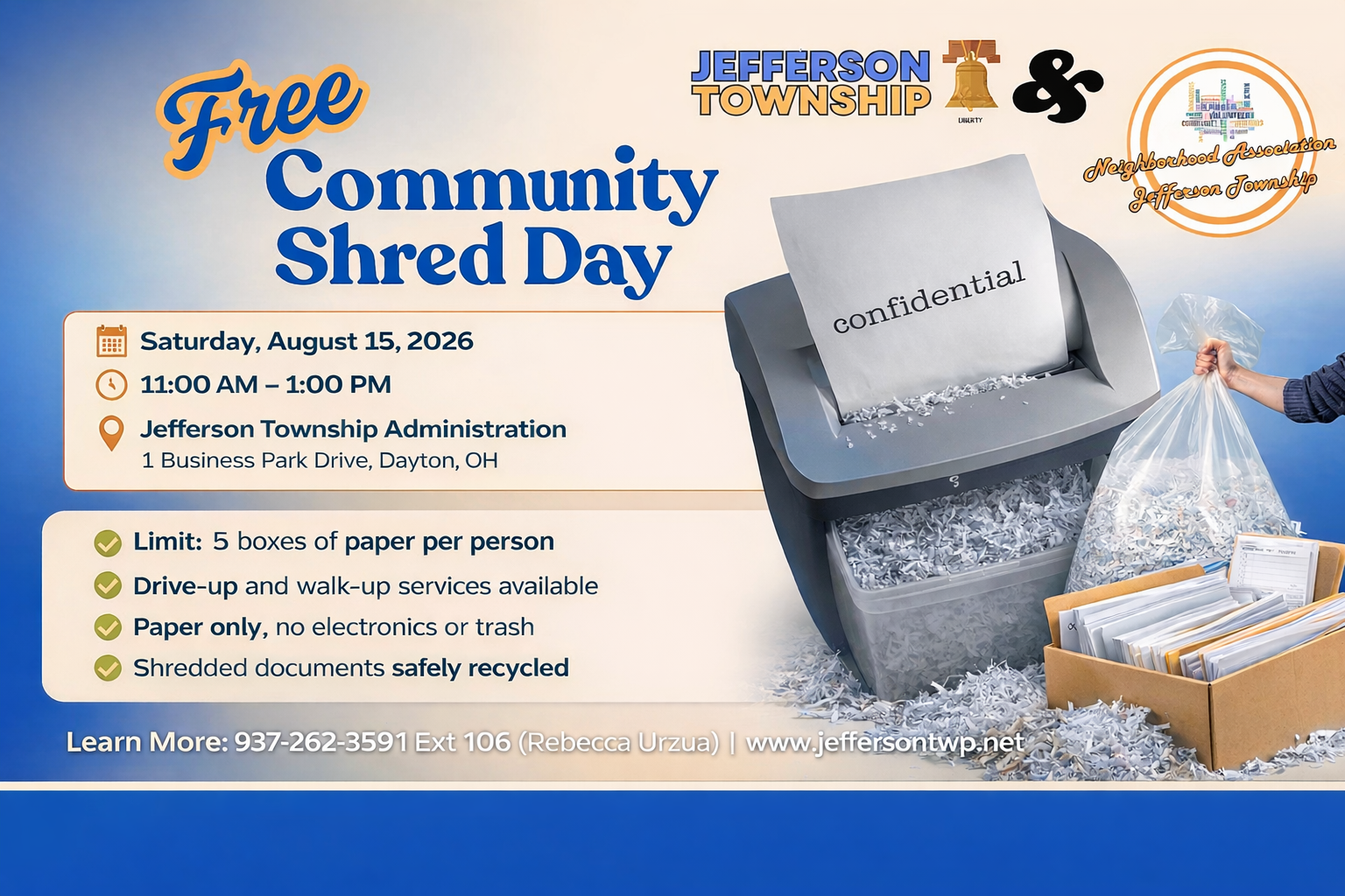 Community Shred Day is hosted by Jefferson Township and the Neighborhood Association of Jefferson Township in collaboration with community partners and professional shredding service providers to ensure secure, compliant document destruction.