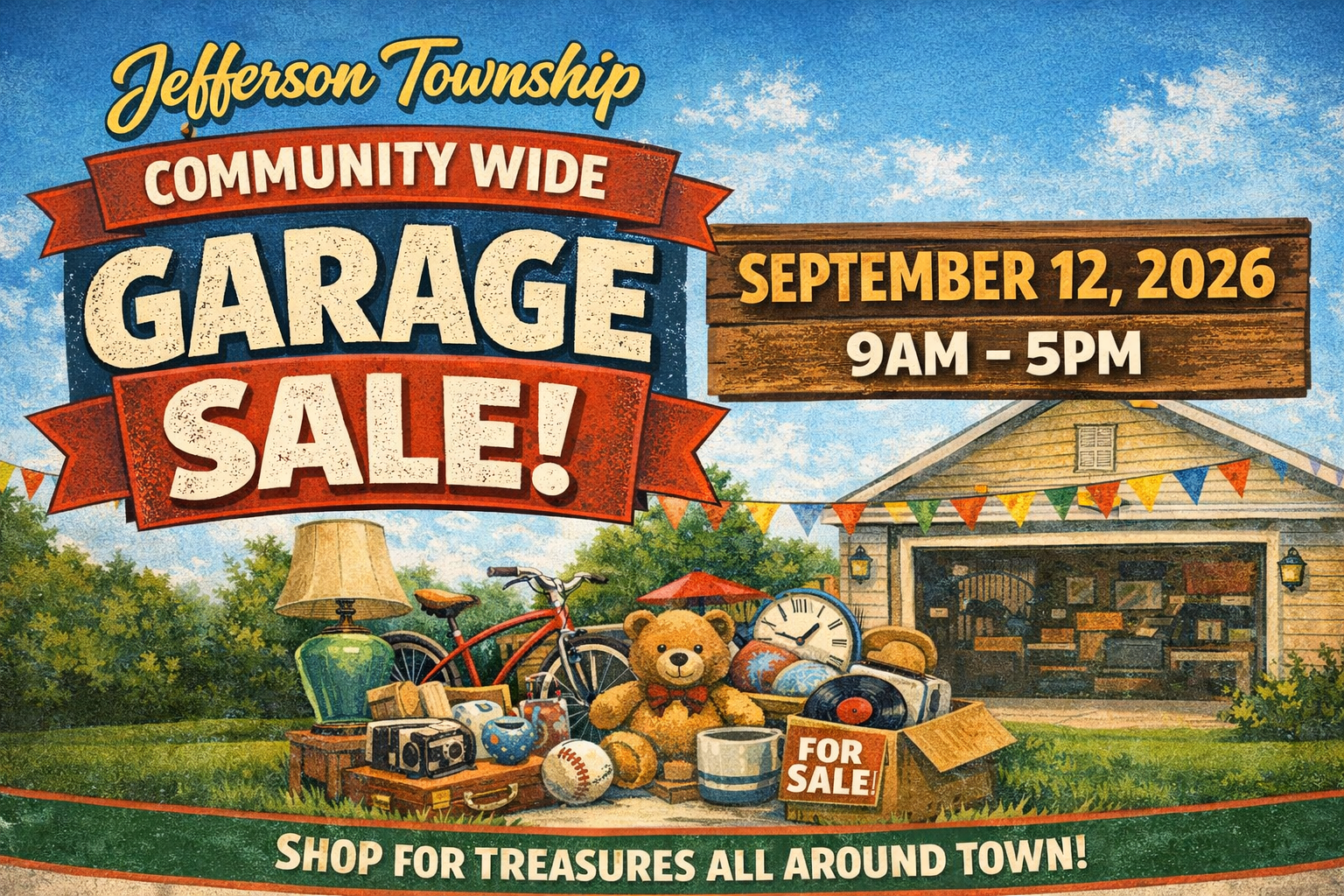 Join us for the Jefferson Township Community-Wide Garage Sale, a fun, township-wide event where residents open their driveways and garages and shoppers explore the community in search of great deals and hidden treasures.