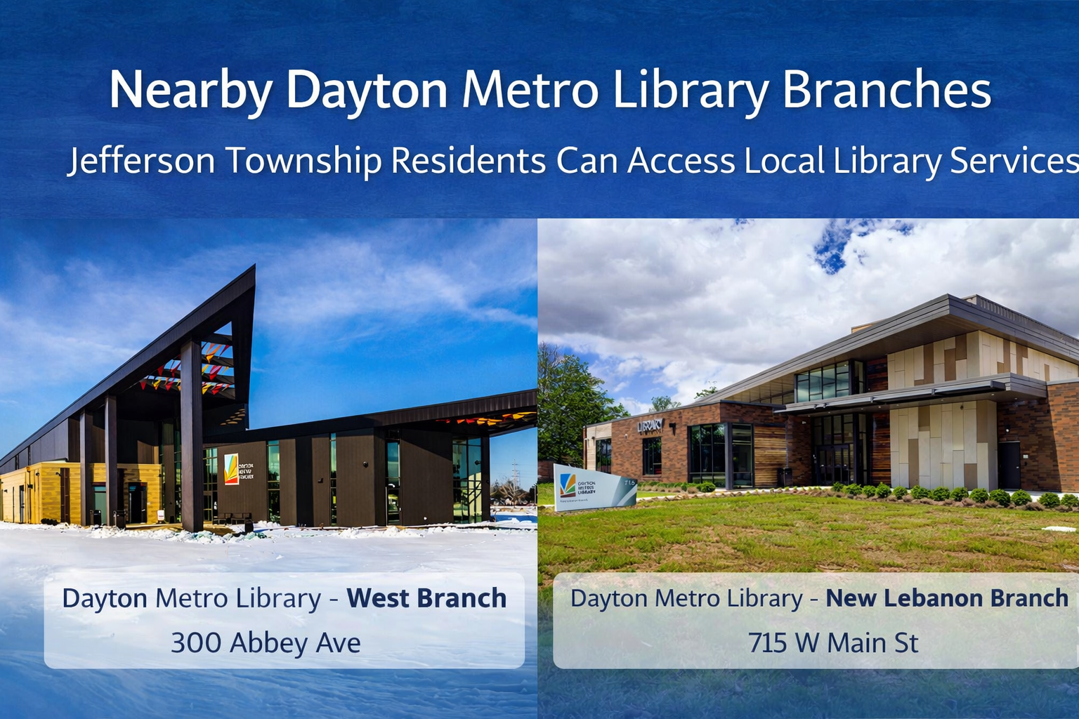 Jefferson Township residents help support the Dayton Metro Library through local tax dollars and, in return, have access to a wide range of free educational, digital, and community services.